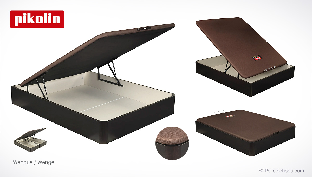Folding bed base in wood, lifting top, storage space, upholstery in various colors and about 32cm high.