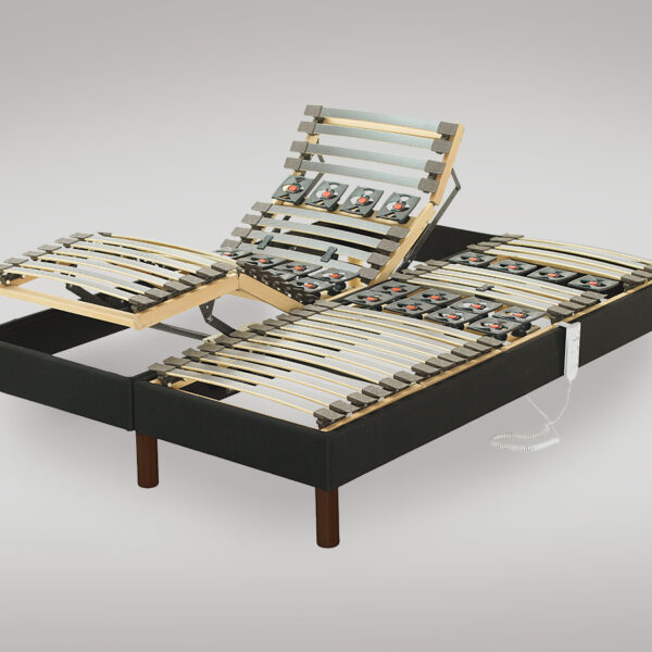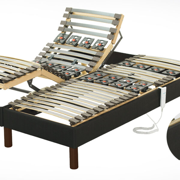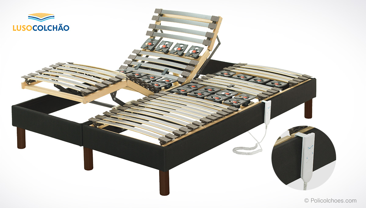 Com calços de conforto e estrutura dupla, que possibilita a articulação individual. Mecanismo controlado através de comando, posicionado na lateral da cama.