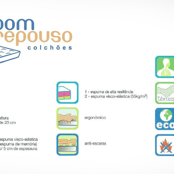 - Estrutura: Bloco de espuma de Alta Resiliência, com 55kg/m3 de densidade e 120mm de espessura.