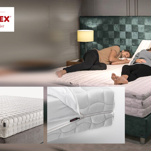 Tecnologia Xenuloc®: Inovadora tecnologia de espuma ecológica moldada, com perfilado em semiesferas e que permite firmezas distintas no mesmo bloco. Produzida com catalisadores à base de água, distingue-se por combinar durabilidade, segurança, frescura e grande capacidade de personalização. - My Comfort