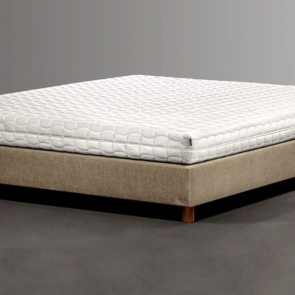 É um colchão de firmeza alta em espuma ecológica moldada, hipoalergénico e ignífugo, com 22 cm de espessura e capa lavável.