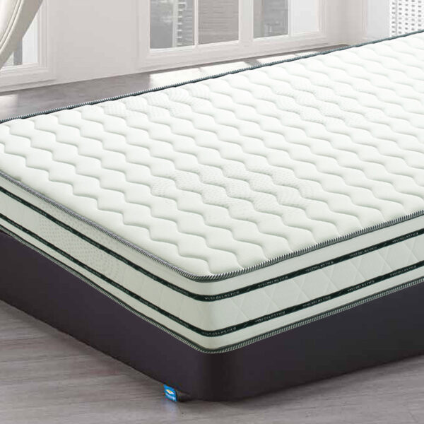 Colchão de núcleo com viscoelástica, de firmeza média/alta, anatómico com 21 cm de espessura e micro massagem.