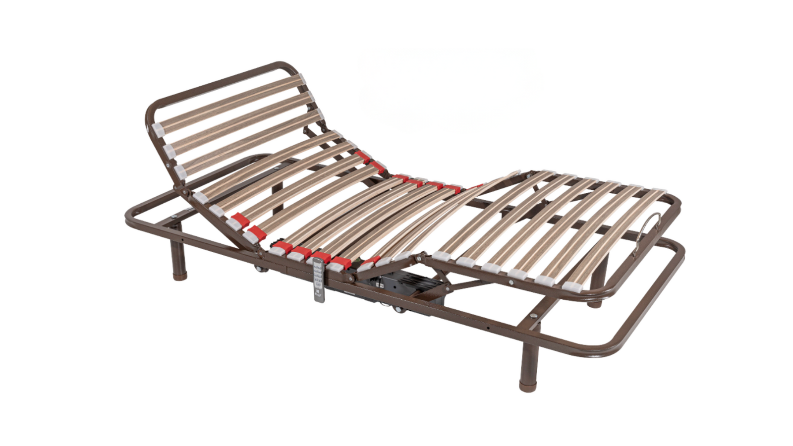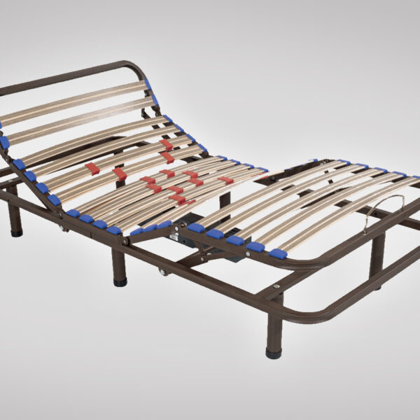- O estrado conjuga 5 zonas de descanso distintas e reguladas por um motor comandado remotamente por comando com fios.